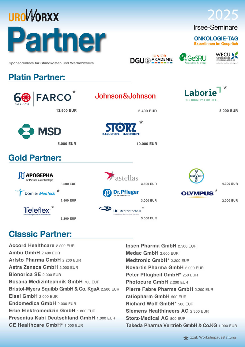 Hier werden Tipps und Tricks zu Diagnostik und Anfängeroperationen, für die ersten Nachtdienste, zur Anamnese- und Gesprächsführung und zu rechtlichen Aspekten vermittelt. Spezielle Workshops befassen sich mit Bildgebung, Urodynamik, Prostatabiopsie sowie Knoten- und Nahttechniken.