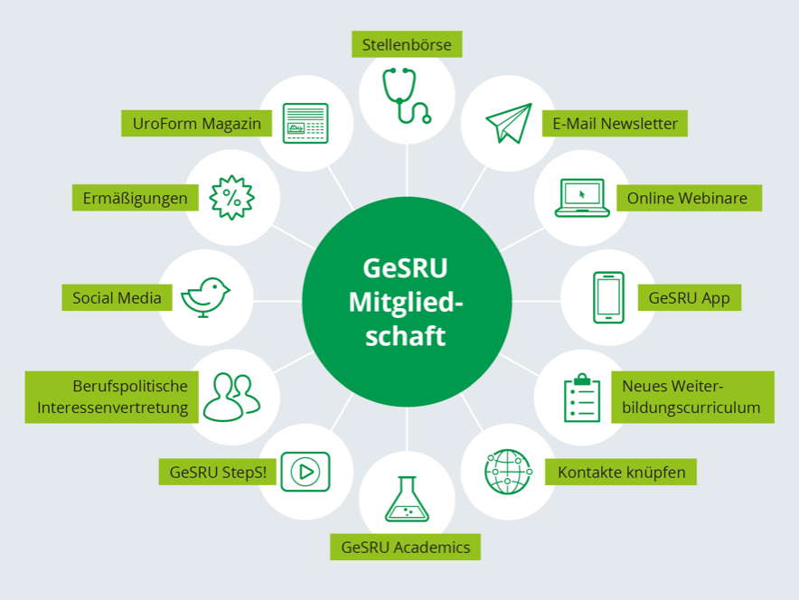 Hierbei stehen wir in enger Zusammenarbeit mit der Gesellschaft für Urologie (DGU) und dem Berufsverband Deutscher Urologen (BvDU) sowie auf europäischer Ebene mit der European Society of Residents in Urology (ESRU).